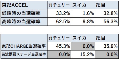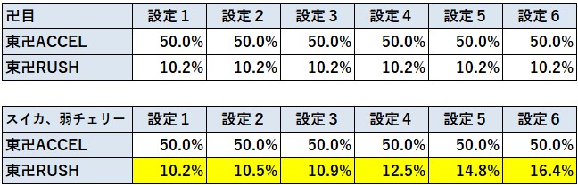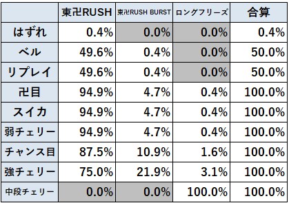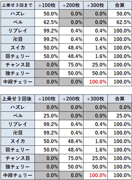 ただし最終ゲームでレア役以外が成立して成功告知が行われた場合は、最終ゲームのフラグ不問抽選や成功告知の持ち越しの影響で上記の数値通りとはいかないのでご注意ください。