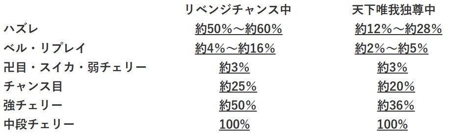 リベンジチャンスや天上天下唯我独尊の成功告知が行われた遊技のフラグごとの黒い衝動突入期待度を一覧として大公開!