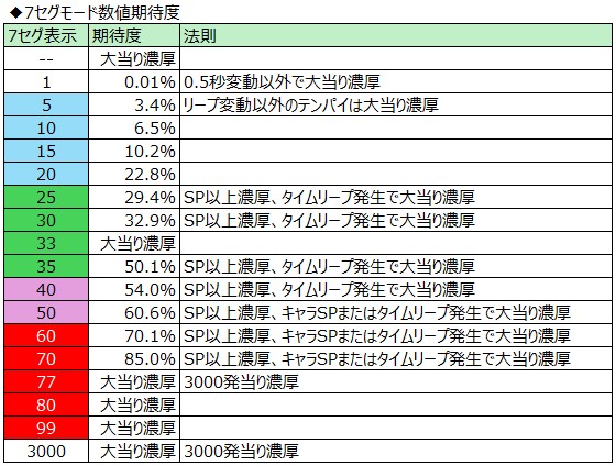 タイムリープ後の予告について法則性はありませんが、タイムリープ演出自体がかなり期待できる予告となっていて出現回数による期待度は下記のとおりです。